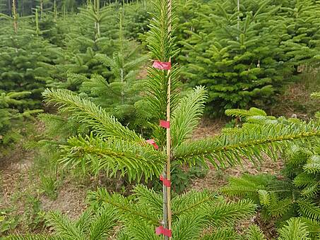 Nach der Aussaat stehen die Sämlinge zwei Jahre im sogenannten Saatbeet in der Baumschule. Dann werden sie verschult, d.h. umgepflanzt. Durch das Verschulen erhalten die Pflanzen mehr Platz und ein besseres Wurzelwerk. Nach einem oder zwei weiteren Jahren im Verschulbeet wird die drei- oder vierjährige Pflanze in das endgültige Weihnachtsbaumquartier verpflanzt. Hier benötigt sie noch einmal 9 bis 11 Jahre, um als Weihnachtsbaum geerntet werden zu können.